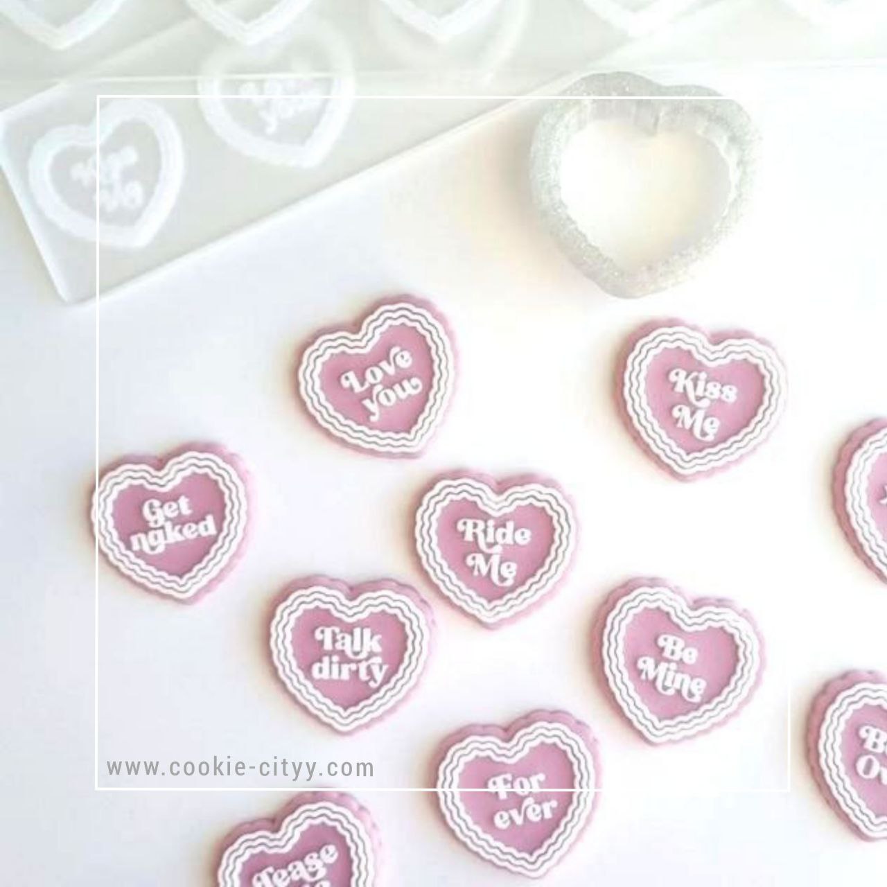 پک استامپ و کاتر 10 تایی نوشته ولنتاینی به همراه کاتر قلب سایز هر نوشته حدود 3 سانت